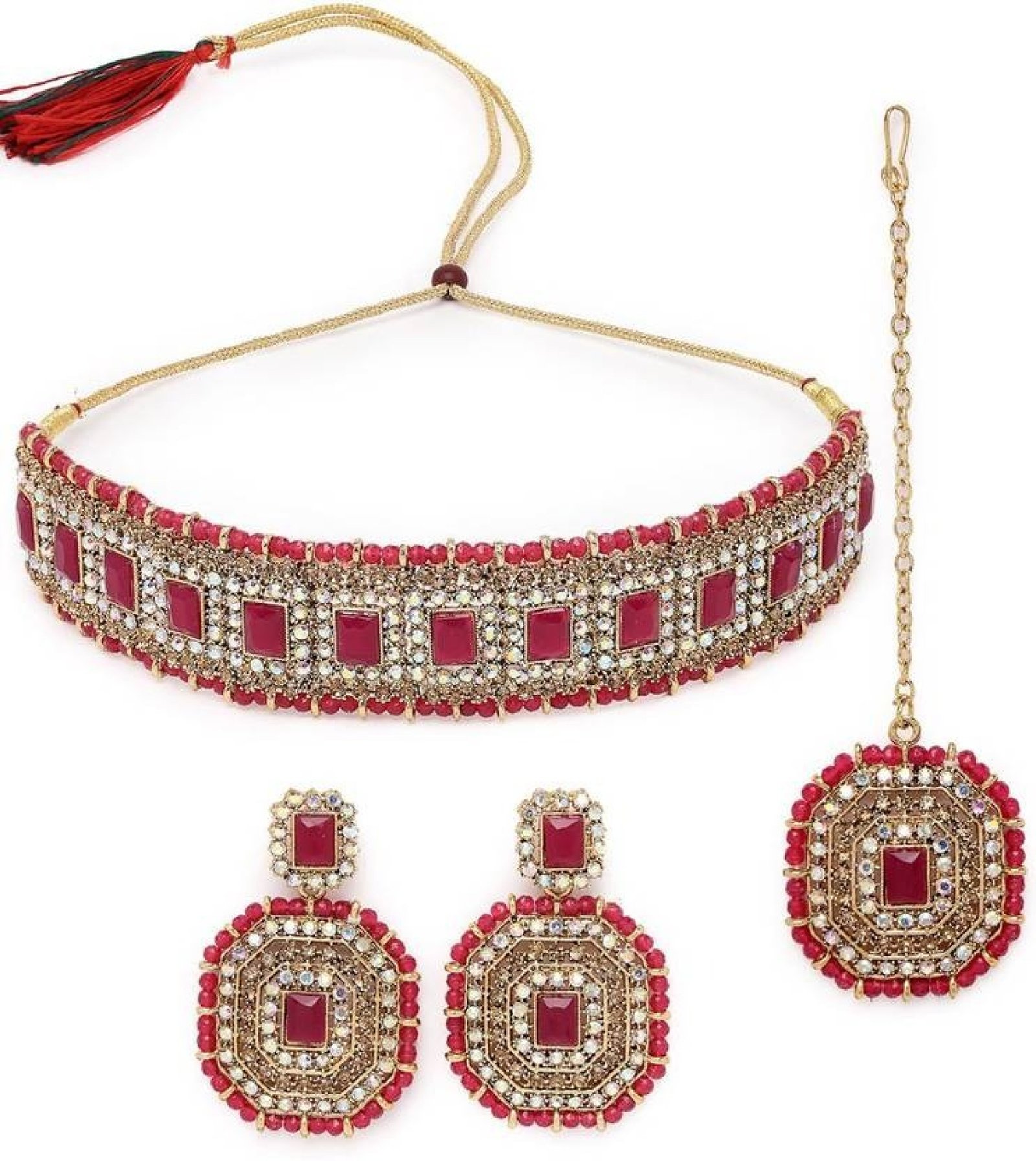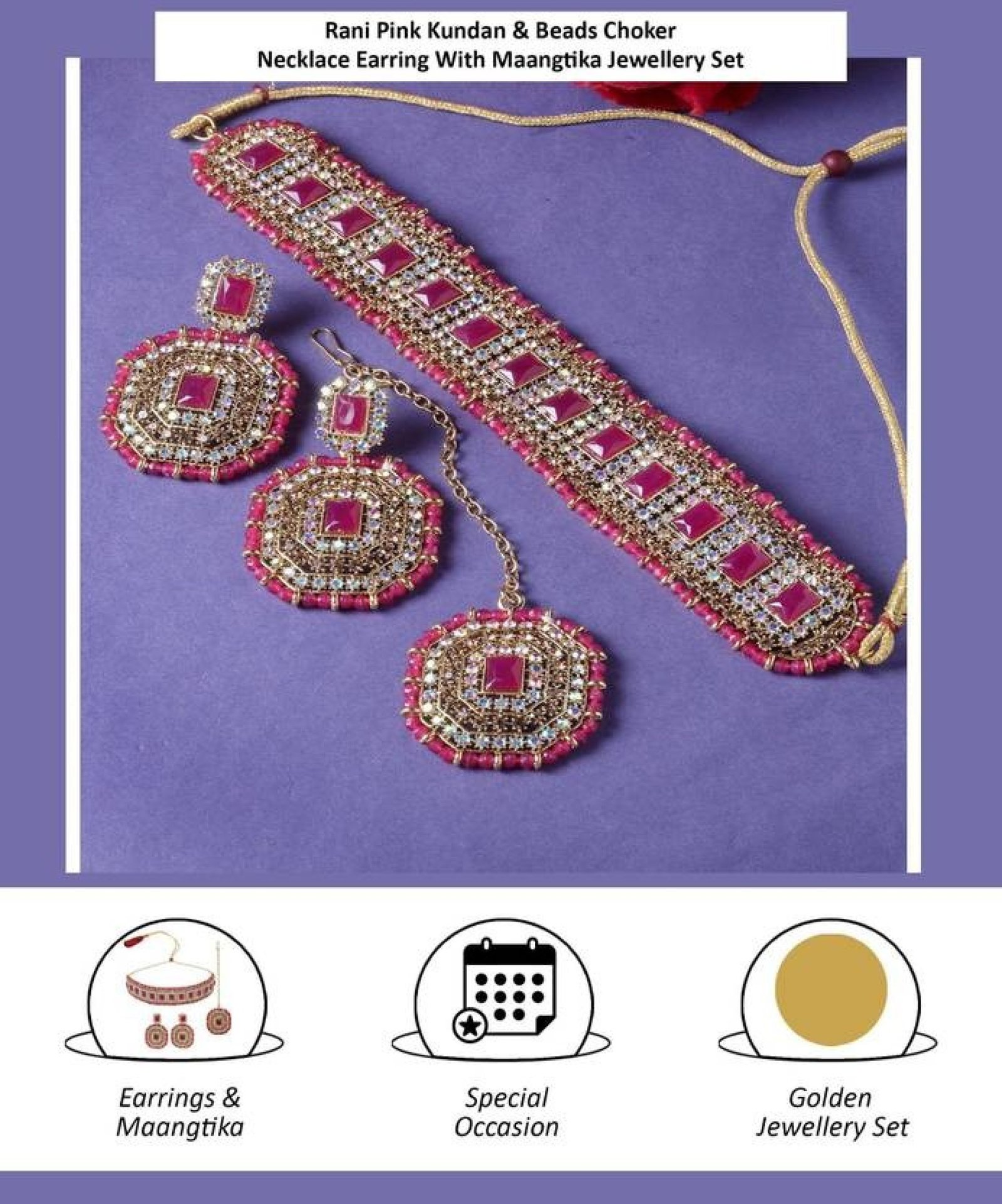 Alloy Gold-plated Pink Jewel Set (Pack of 4)