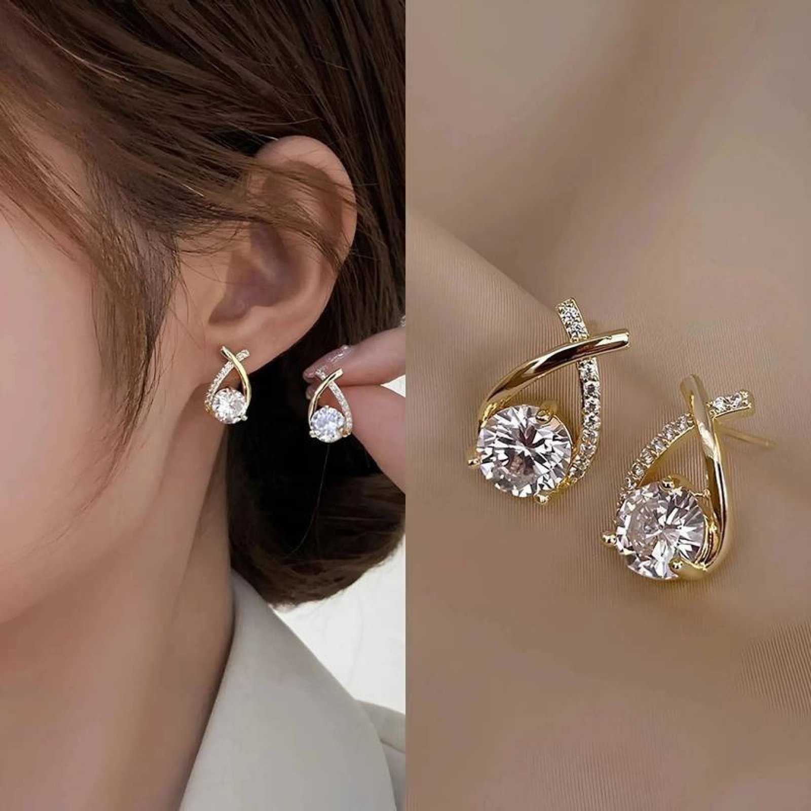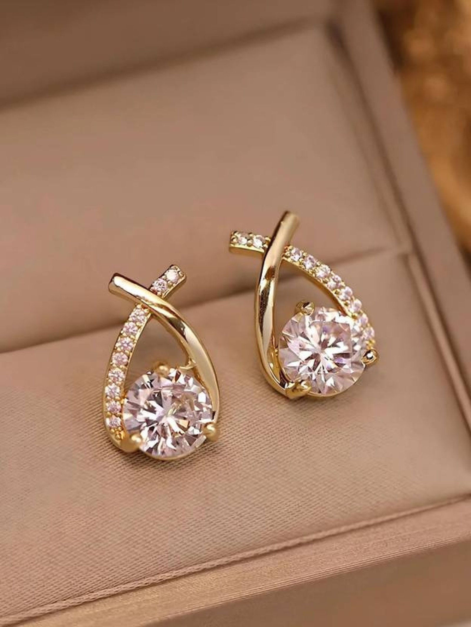 Gold Plated Korean Fashion CrystalStone Cross Pearl Zircon Stud Earrings Alloy Stud Earring