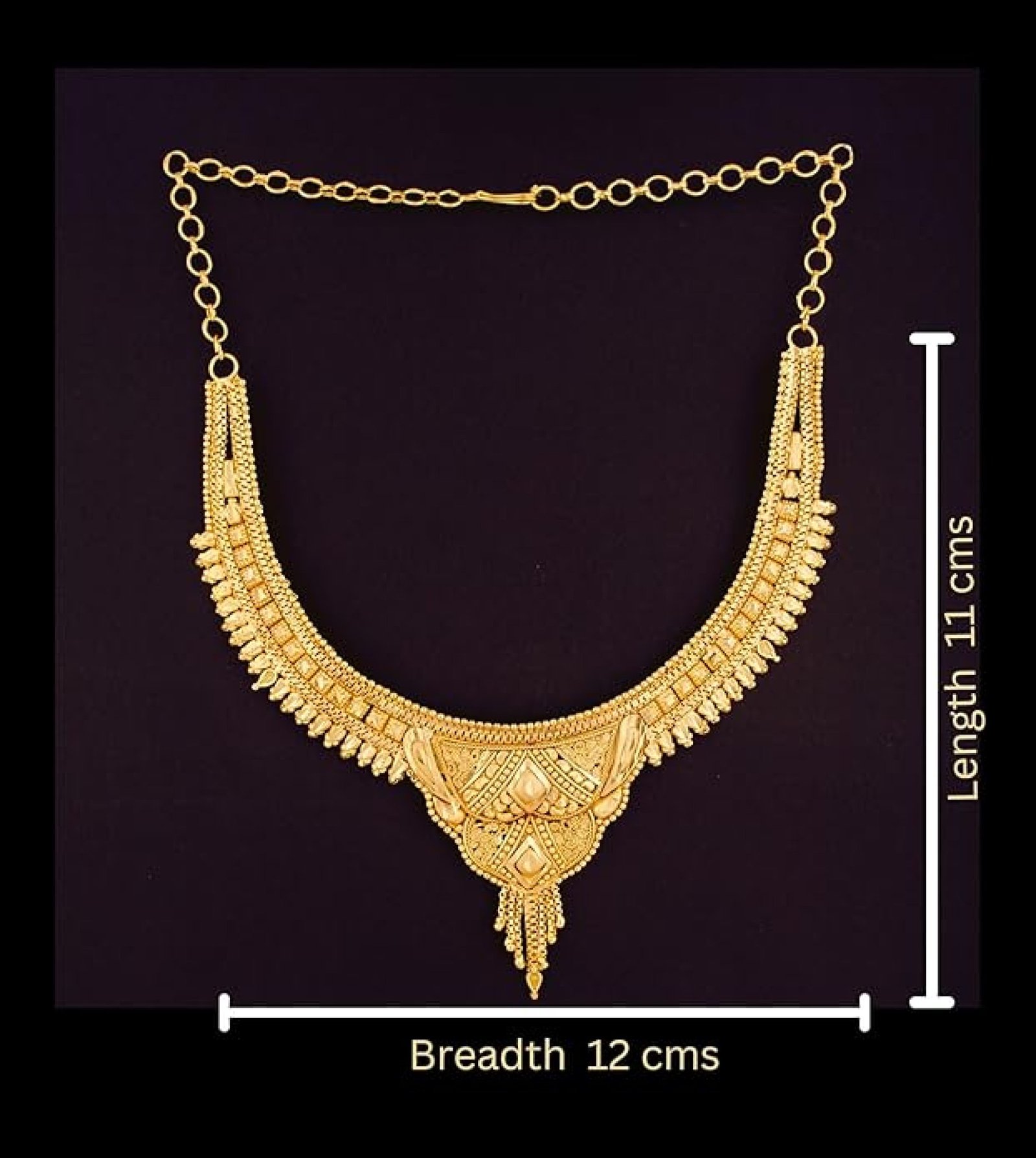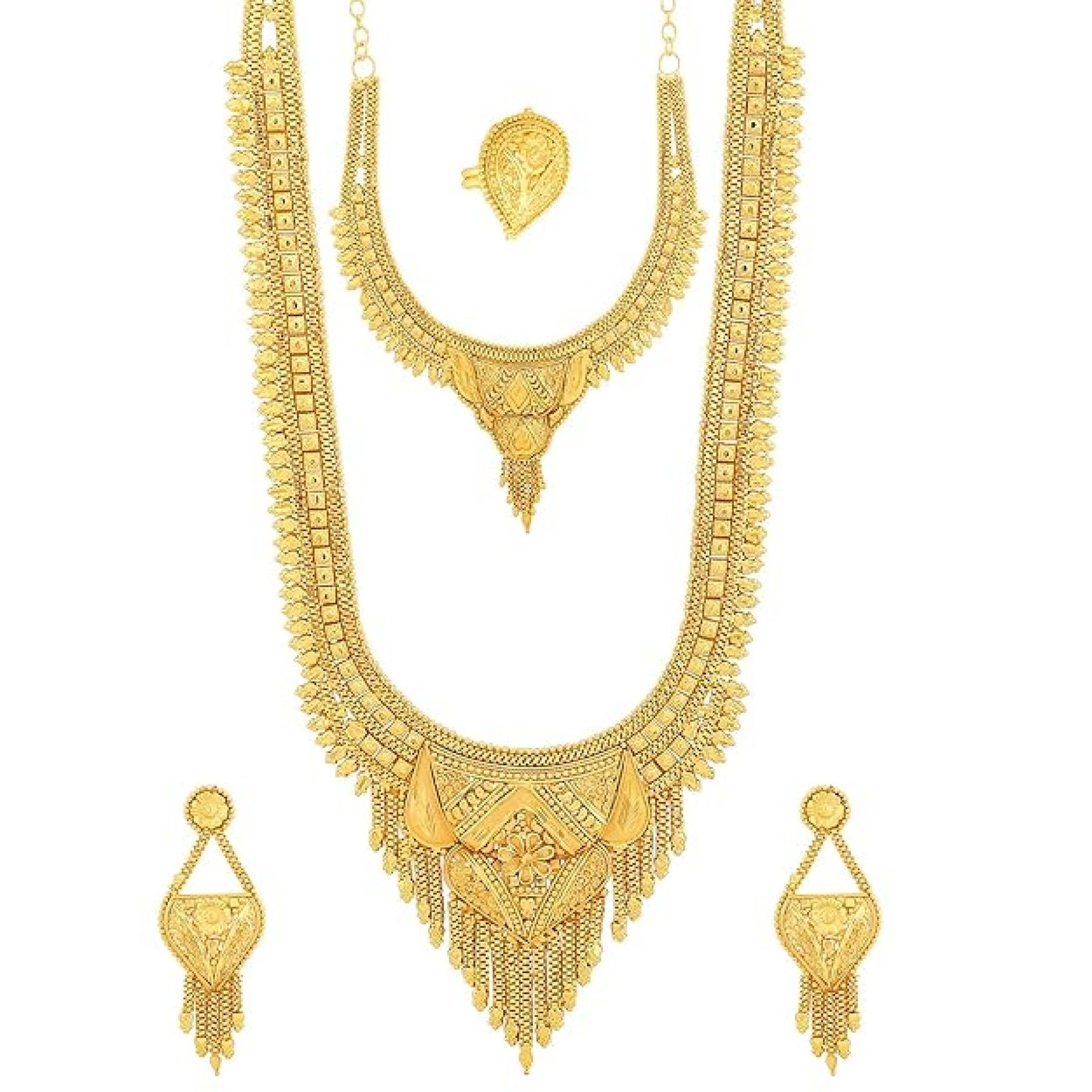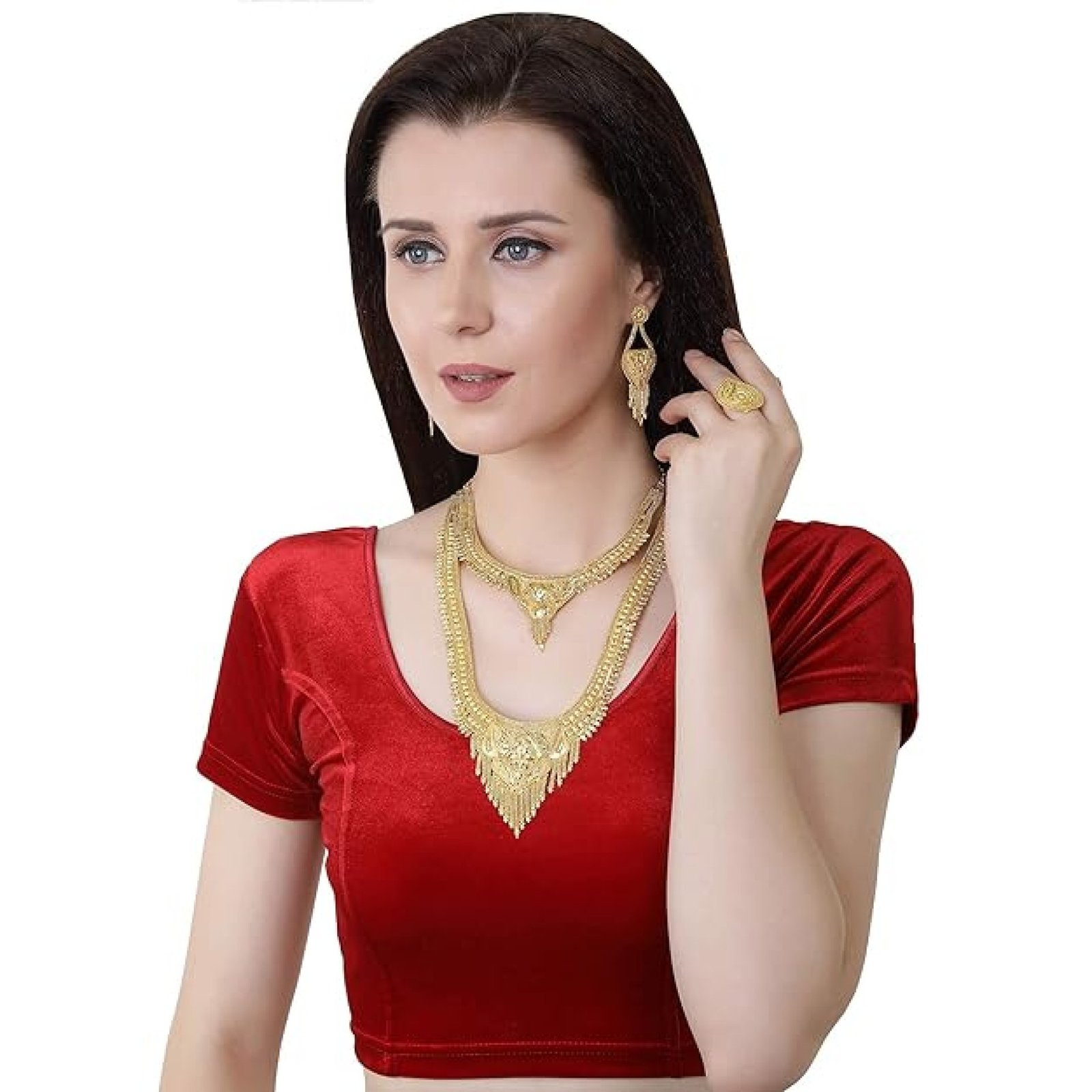- Pair This 24 carat original pure gold plated Manikya Traditional Bridal Wedding Jewellery Necklace Set With Saree or any tradition attire for an enhanced Stylish Traditional Look. Gold coating done through ‘German Technolodgy’ to be allergy resistant, skin friendly and gives Real authentic Gold look.